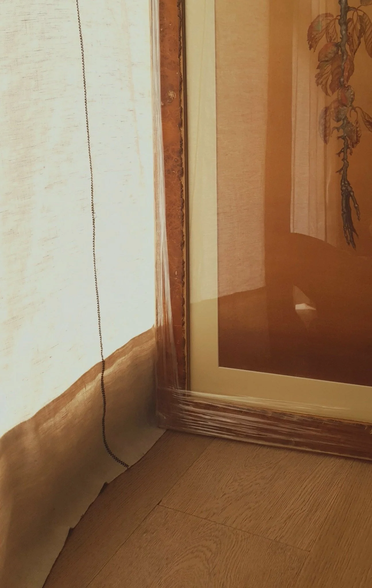 Bác nói đây là khúc gỗ cuối cùng vì bên xưởng gỗ không còn sản xuất. Nên dù thấy thú vị ở sự hữu duyên này nhưng cũng hơi tiếc vì những tranh sau cùng series sẽ không đồng bộ được nữa. Tới đó lại phải tiếp tục hành trình đi tìm cái khung vừa vặn, cộng hưởng hài hoà không chỉ với tranh mà cả những bức bên cạnh nó.